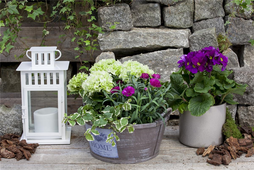 Primula obconica Bei Balkon- und Terrassenpflanzen kann man ältere Hortensien überwintern, indem man sie an die Hauswand rückt. Die Gefäße umwickelt man mit Jute, Vlies oder Pflanzenfolie und platziert sie auf einer Holzunterlage, denn das Wurzelwerk soll immer kältegeschützt sein. Nun muss man verhindern, dass die Pflanzen austrocknen. Regelmäßiges Überprüfen und Gießen sichert, dass man erfolgreich seine Hortensien überwintern kann. Aber auf ein Ablaufloch achten, damit sich keine Staunässe bildet. Diese mögen Hortensien grundsätzlich nicht und im kalten Winter wird das nicht besser!