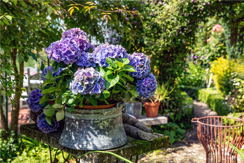 Hortensie im Pflanzkübel