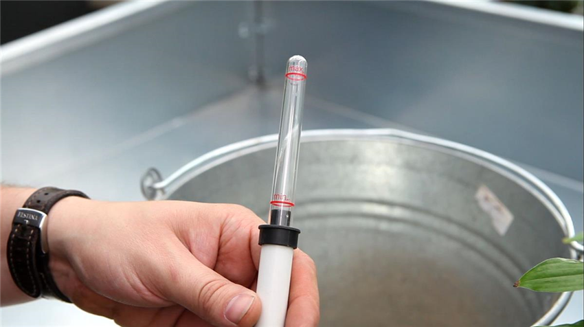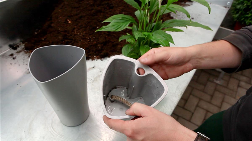 Einblatt - Einpflanzen in ein Gefäß (5) Zum Umfang vieler wasserspeichernder Pflanzgefäße gehört auch ein Wasserstandsanzeiger. Prüfen Sie, ob dieser auch funktionstüchtig ist. Stellen Sie also sicher, dass der Anzeigenstab sich nicht verhakt hat und stecken Sie ihn in den dafür vorgesehenen Platz.