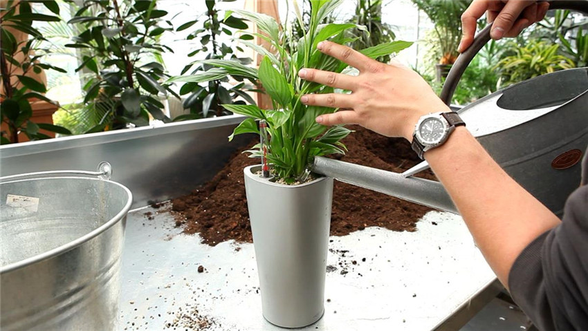 Einblatt - Einpflanzen in ein Gefäß (2) Am besten gedeiht diese beliebte Zimmerpflanze, wenn sie immer gut mit Wasser versorgt wird. Um genau diesen Punkt sicherzustellen ist das Einpflanzen in einen Blumentopf mit Wasserspeicher absolut empfehlenswert.