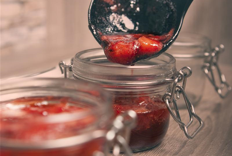 Einer der großen Vorteile beim Selbstkochen von Marmelade und Konfitüre ist, den Zuckergehalt zu steuern. Viele Leute schätzen es, wenn sie mehr Frucht und weniger Industriesüße enthält. Bevor man den Pürierstab schwingt, kann man einige schöne Früchte zurückhalten, um sie in kleinen Stücken der Marmelade beizufügen. Das sieht gut aus und gibt dem Ganzen einen knackigen Pfiff. Beliebte Zutaten sind Zimt und Kardamom. Aber auch eine dezente Ingwernote und deutlicher Vanillegeschmack erfreuen sich großer Beliebtheit. Ein Schuss Alkohol macht die Früchtchen ebenfalls interessanter für den genüsslichen Verzehr. Das erreicht man mit Likören, aber auch mit ein paar Tropfen Schnaps wie zum Beispiel Gin. Kreativen Einfällen sind hier keine Grenzen gesetzt. Hauptsache, das Ergebnis schmeckt!