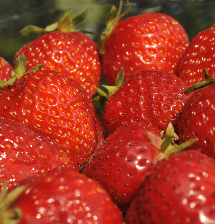 Die Erdbeere 'Senga®-Sengana®' (Fragaria x ananassa) bildet rote, sehr große Beeren. Diese sind fest und süß, aromatisch im Geschmack. Für eine ertragreiche Ernte ab Juni schaffen durchlässiger, humoser, schwachsaurer Boden und ein sonniger Standort optimale Bedingungen. Ihre weißen Blüten sind eine schöne Erscheinung. Die Erdbeere 'Senga®-Sengana®' wird mit ihrem ausläuferbildenden und aufrechten Wuchs etwa 20 cm hoch und 30 cm breit, dadurch kann sie hervorragend in Töpfen auf Balkon oder Terrasse angebaut werden.