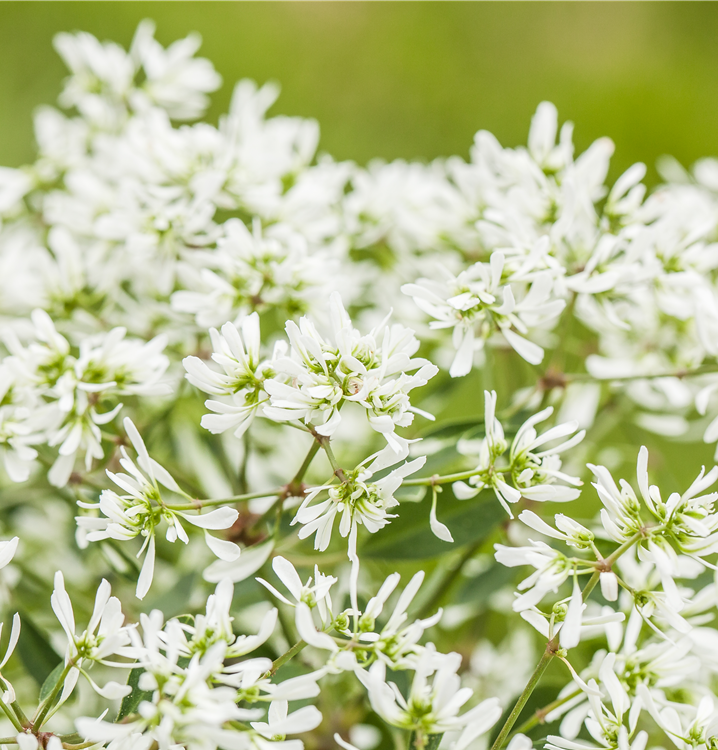 Die weißen Blüten erscheinen von Mai bis September.