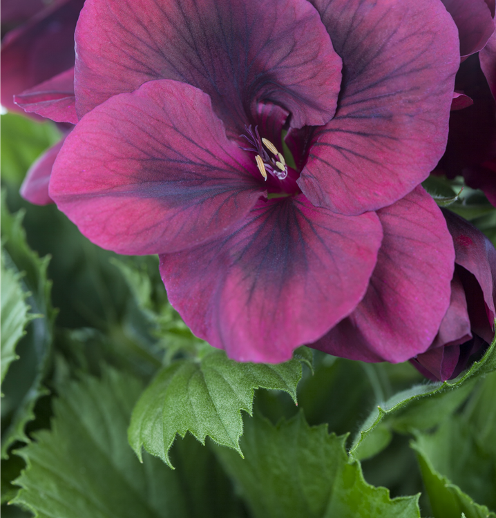 Die Blätter der Englische Geranie sind mittelgrün, handförmig, gezähnt.