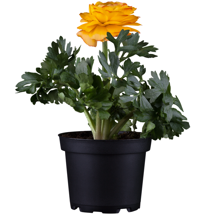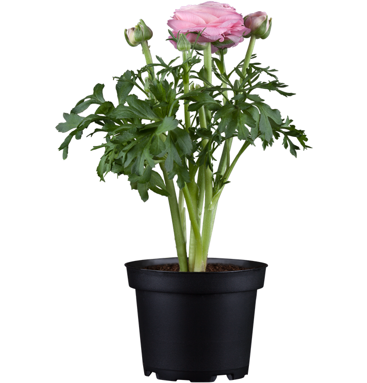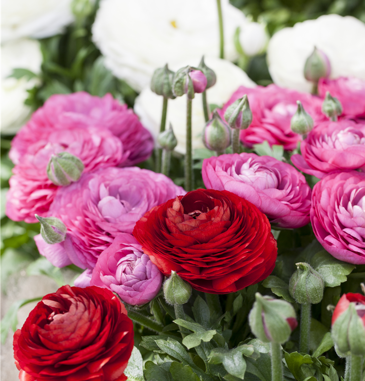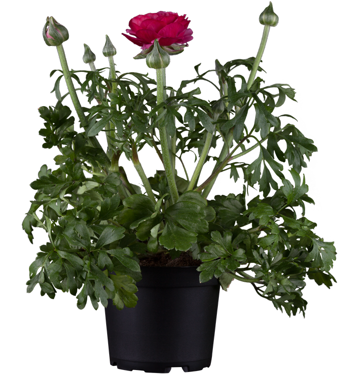 Die Ranunkel (Ranunculus asiaticus) ist eine beliebte, pflegeleichte Pflanze für den Balkon, die während der gesamten Saison unzählige weiße, gelbe, orangefarbene, rote oder rosafarbene Blüten bildet. Die mittelgrünen Blätter sind gefingert. Ein sonniger Standort und ein durchlässiges Substrat werden bevorzugt.