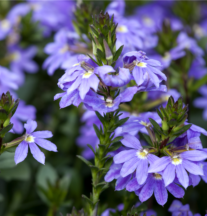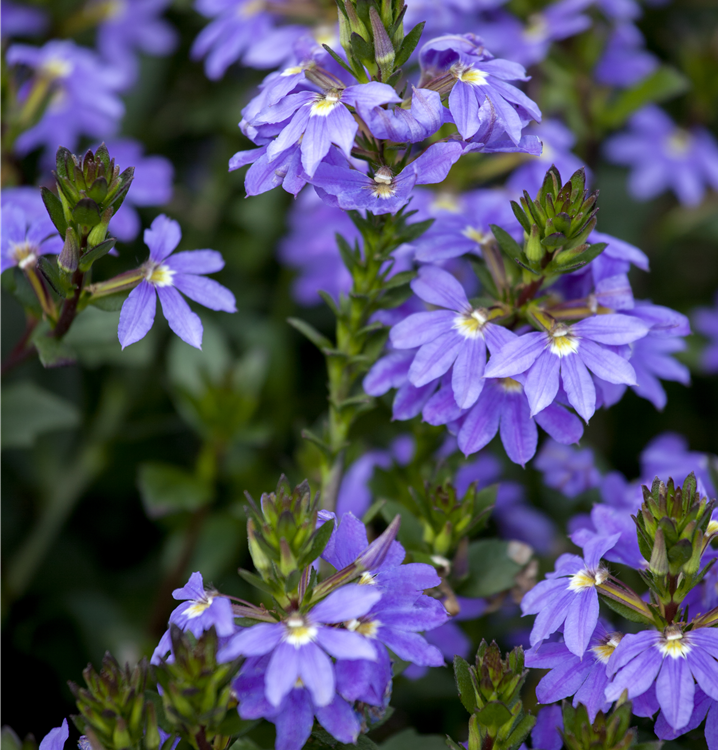 Die Fächerblume (Scaevola aemula) ist eine beliebte Pflanze für den Balkon, die während der gesamten Saison unzählige blaue, lilafarbene, rosafarbene oder weiße Blüten bildet. Ein sonniger bis halbschattiger Standort und ein durchlässiges Substrat werden bevorzugt. Mit ihrem mattenbildenden Wuchs passt die Fächerblume besonders gut in Blumenampeln und hängende Pflanzkörbe.