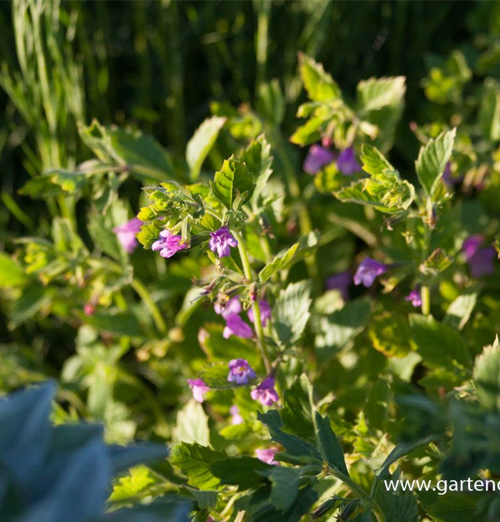 Calamintha grandiflora bildet lippenförmige, in Quirlen angeordnete, rosafarbene Blüten ab Mai. Diese verströmen einen angenehmen Duft.