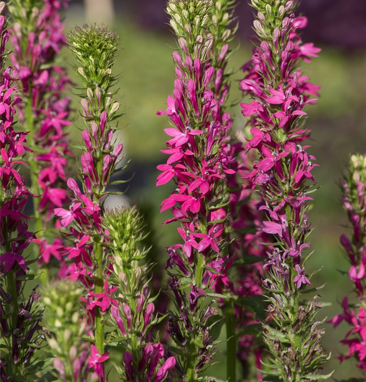 Lobelia x speciosa 'Monet Moment' bildet in Trauben angeordnete, pinke Blüten ab Juli.