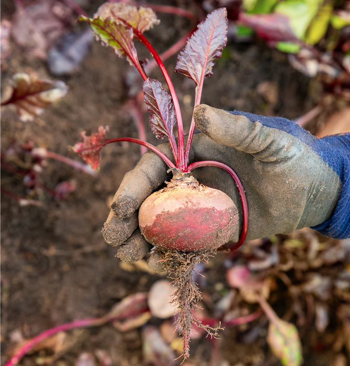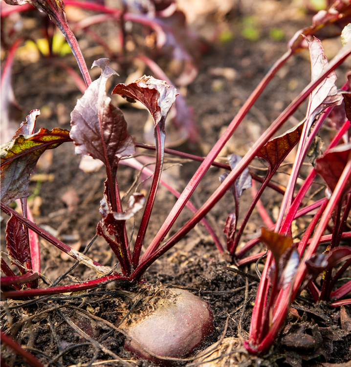 Die Rote Beete (Beta vulgaris) bildet Knollen, die pikant schmecken und bereits ab September geerntet werden können. Für das optimale Wachstum der Rote Beete werden ein sonniger Standort und durchlässiger, nährstoffreicher Boden benötigt.