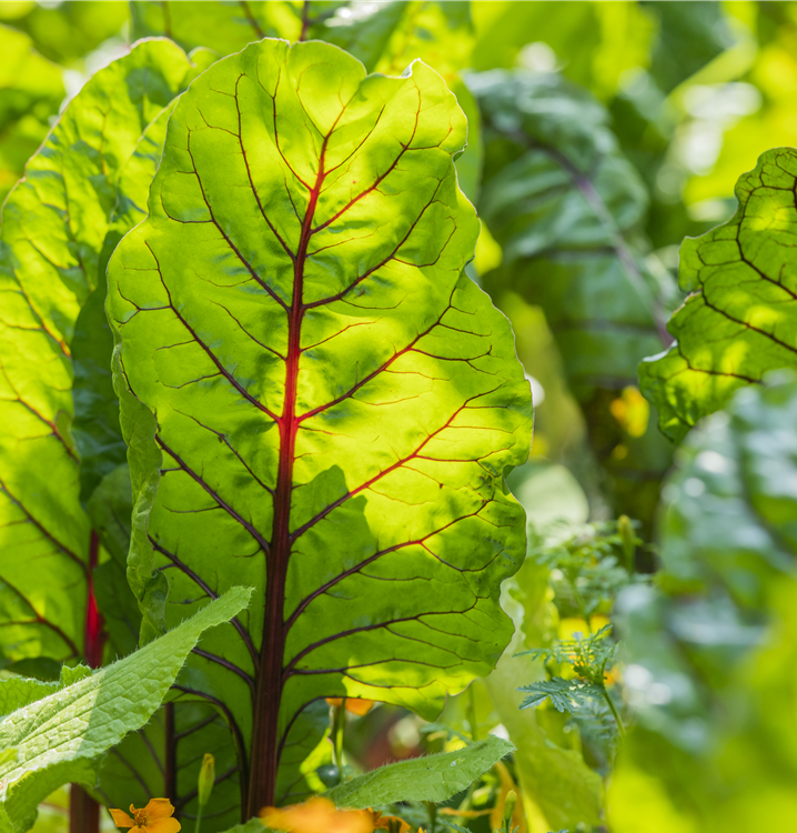 Der Blatt-Mangold (Beta vulgaris) ist eine pikant schmeckende Gemüsepflanze. Seine Blätter können geerntet werden, sobald er ca. 30 cm erreicht hat. Für das optimale Wachstum des Blatt-Mangolds werden ein sonniger Standort und durchlässiger, nährstoffreicher Boden benötigt.