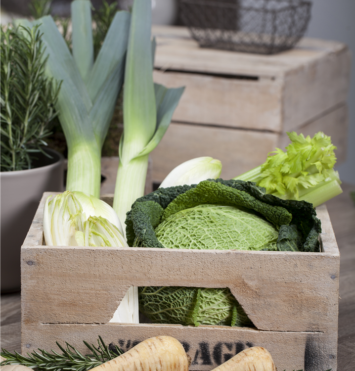Der Wirsingkohl (Brassica oleracea var. capitata) ist eine aromatisch schmeckende Gemüsepflanze. Seine Blätter können geerntet werden, sobald er ca. 40 cm erreicht hat. Für das optimale Wachstum des Wirsingkohls werden ein sonniger Standort und durchlässiger, nährstoffreicher Boden benötigt.