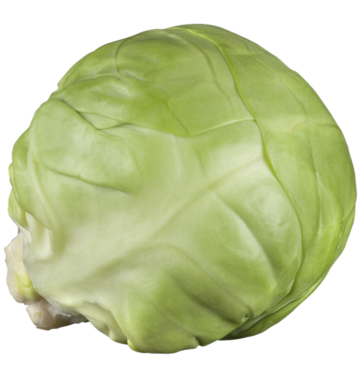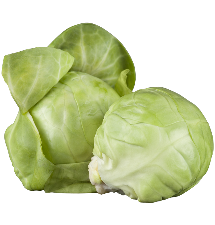 Die Blätter des Rosenkohls sind blau-grün, weiß geädert, rundlich, gewellt.