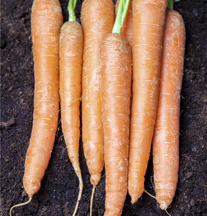 Die orangefarbenen Wurzeln haben einen aromatischen Geschmack. Reifezeit ab Juni.