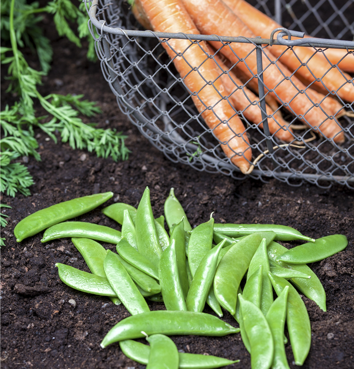 Die Gartenmöhre (Daucus carota var. sativus) bildet Wurzeln, die aromatisch schmecken und bereits ab Juni geerntet werden können. Für das optimale Wachstum der Gartenmöhre werden ein sonniger Standort und durchlässiger, nährstoffreicher Boden benötigt.