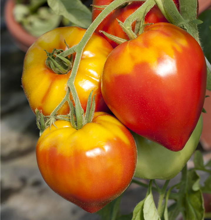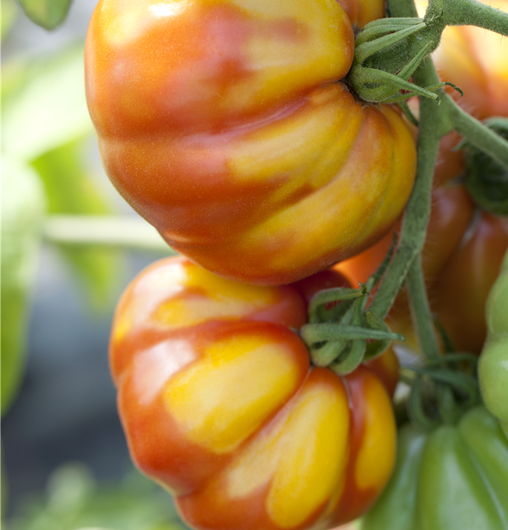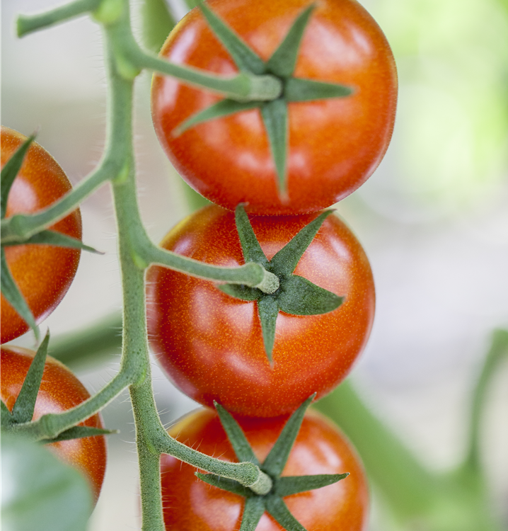 Die Tomate (Solanum lycopersicum) bildet Früchte, die aromatisch schmecken und bereits ab Juli geerntet werden können. Für das optimale Wachstum der Tomate werden ein sonniger Standort und durchlässiger, nährstoffreicher Boden benötigt.