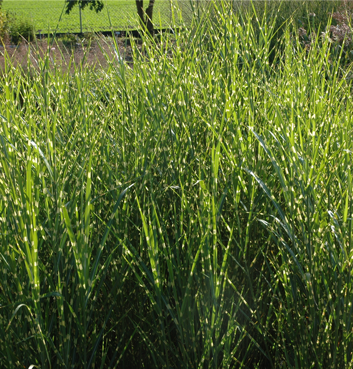 Das Garten-Zebraschilf 'Strictus' (Miscanthus sinensis) ist mit seiner gelb-grünen Blattfärbung ein dekoratives Gestaltungselement im Garten, welches ebenso mit seinem aufrechten Wuchs hervorsticht. Die rot-braunen Blütenrispen schmücken diese Gras ab Herbst. An einem sonnigen Standort mit einem möglichst durchlässigen, humosen, nährstoffreichen Boden fühlt es sich am wohlsten. Bei günstigen Bedingungen erreicht dieses winterharte Gras eine Höhe von ca. 1,5 m und wird bis zu 80 cm breit.