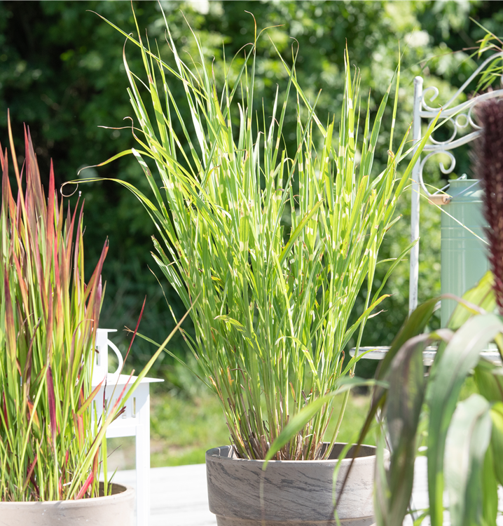 Das Garten-Zebraschilf 'Strictus' setzt schöne Akzente gemeinsam mit:
