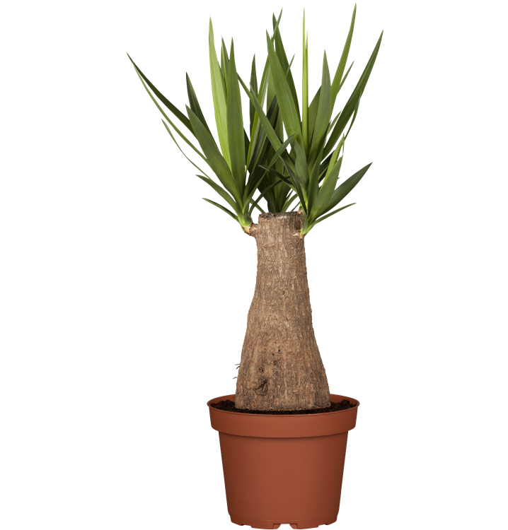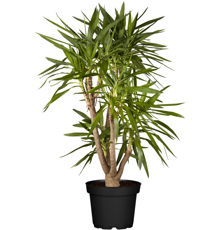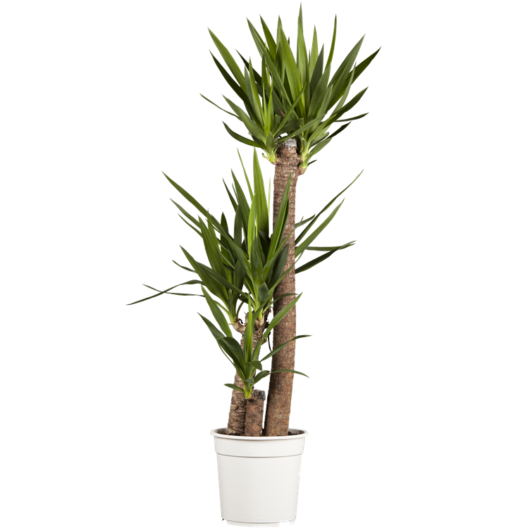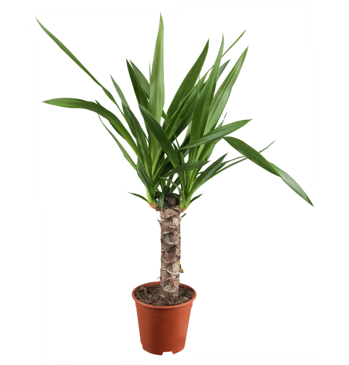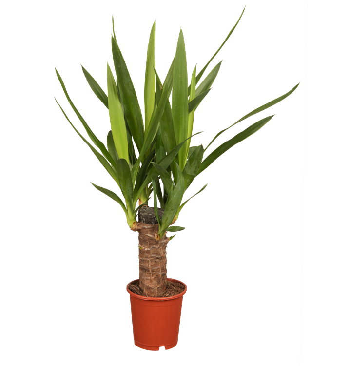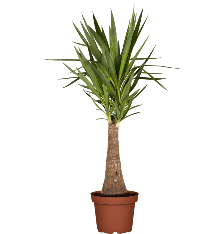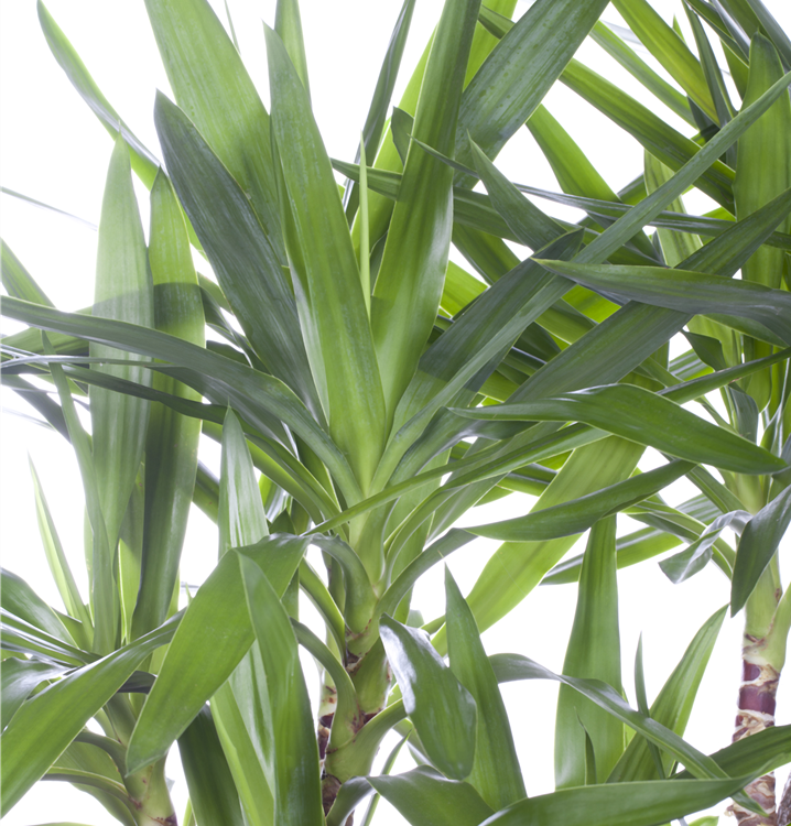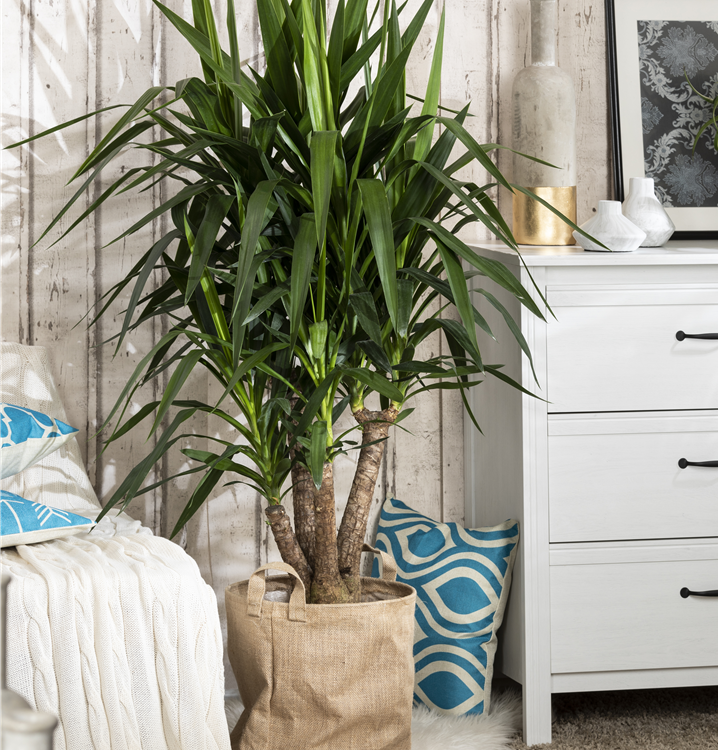 Die Riesen-Palmlilie (Yucca elephantipes) trägt dunkelgrüne, lineale, matte Blätter. Diese aufrechte Pflanze gedeiht am besten an einem sonnigen Standort.