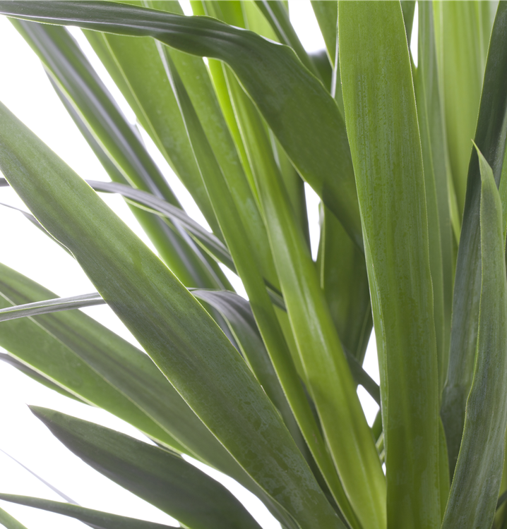Die immergrünen Blätter der Riesen-Palmlilie sind dunkelgrün, lineal, matt.