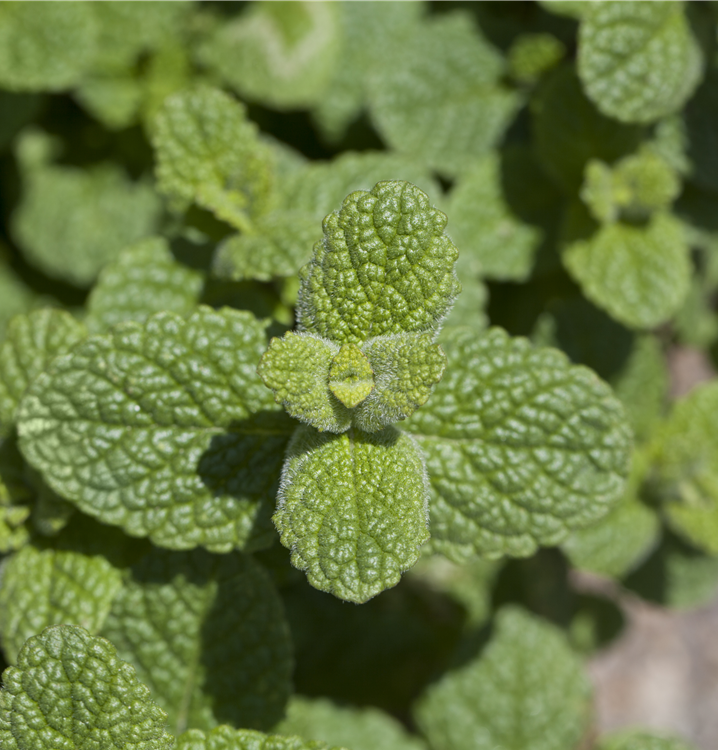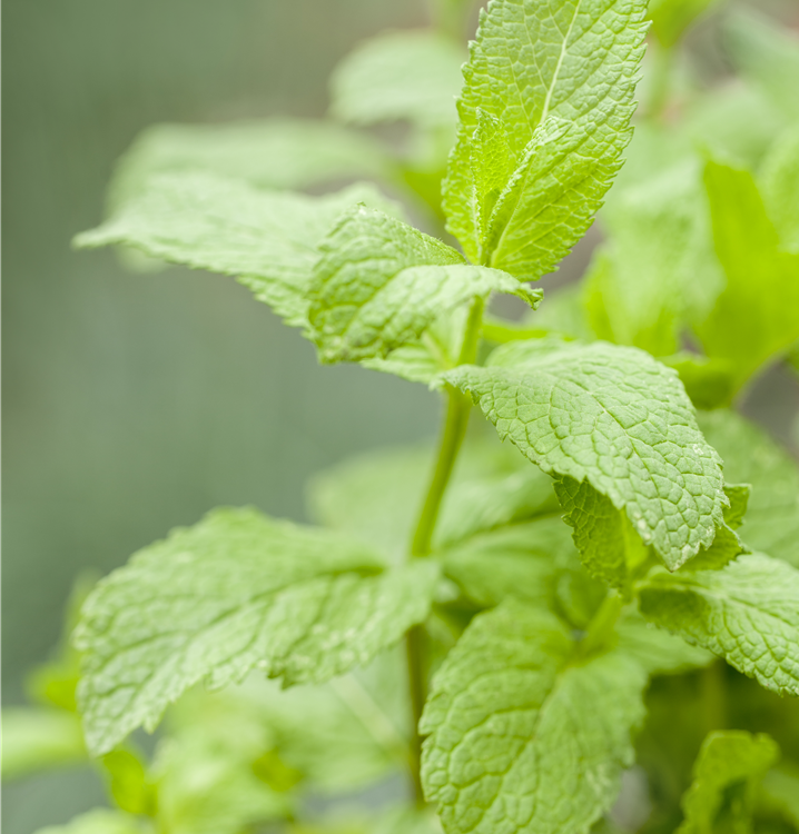 Die Minze (Mentha species) ist eine Kräuterpflanze mit einem erfrischenden Geschmack. Ihre mittelgrünen Blätter sind eiförmig und gezähnt. Für das optimale Wachstum der Minze werden ein sonniger Standort und durchlässiger, nährstoffreicher Boden benötigt.