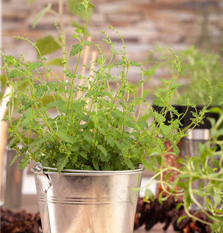 Zum Verzehr geeignet. Die mittelgrünen, gezähnten Blätter sind eiförmig und überzeugen mit erfrischendem Geschmack.