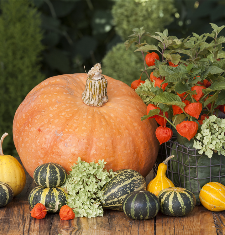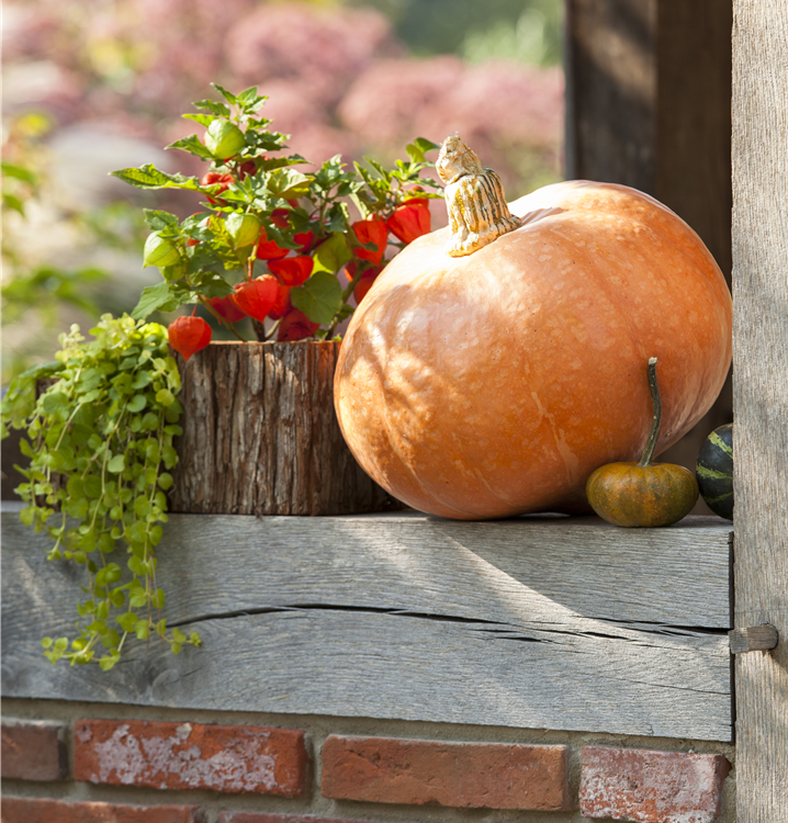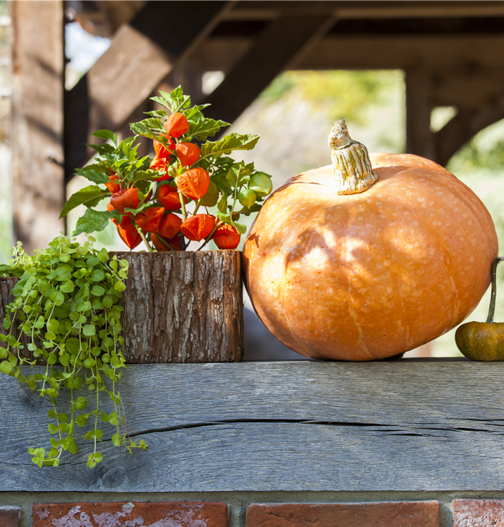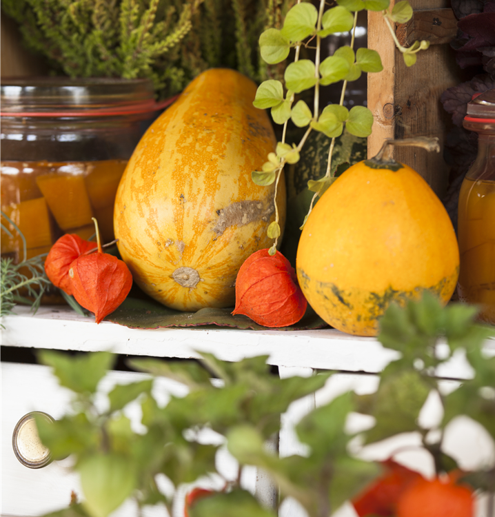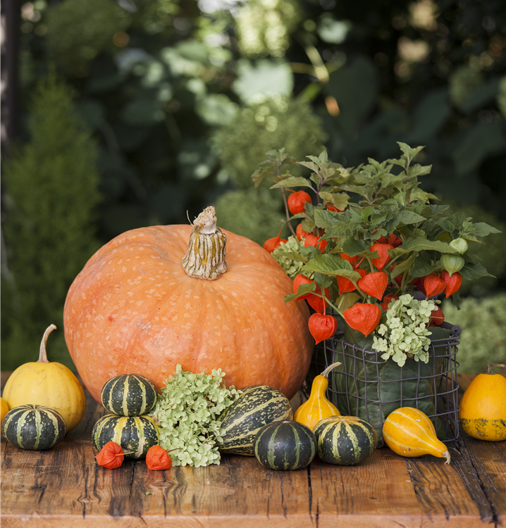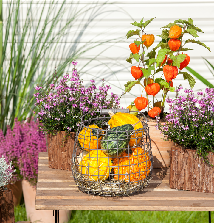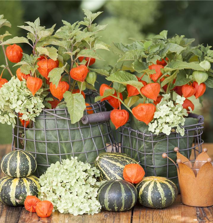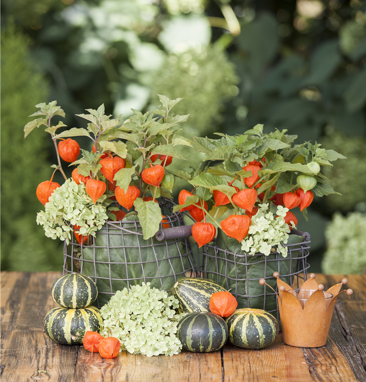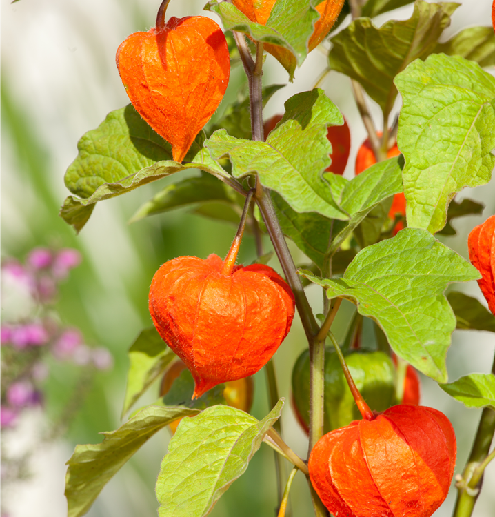 Besonders dekorativ sind die orange-roten Früchte von Physalis alkekengi. Diese erscheinen ab August.
