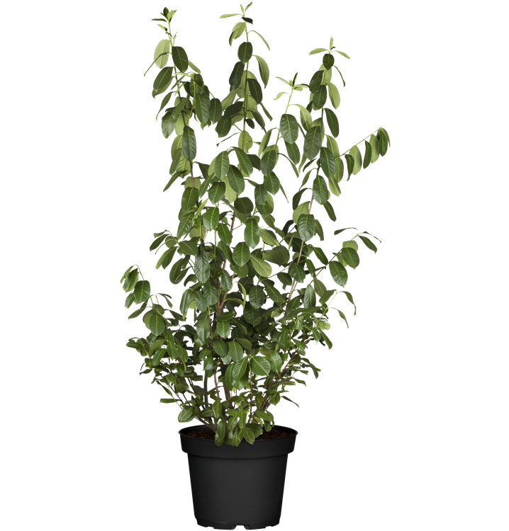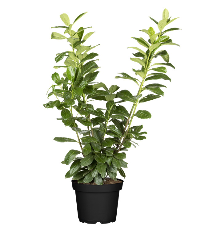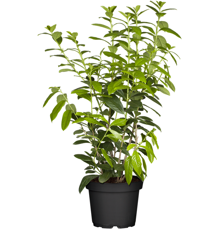 Lorbeerkirsche ist ein Großstrauch. Sie erreicht gewöhnlich eine Höhe von 3 - 5 m und wird ca. 2 - 4 m breit.