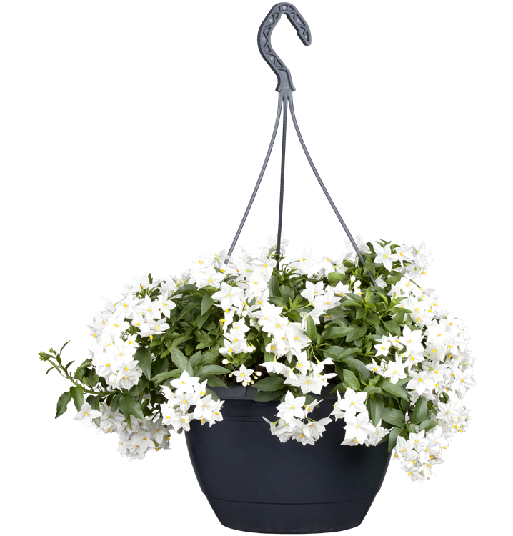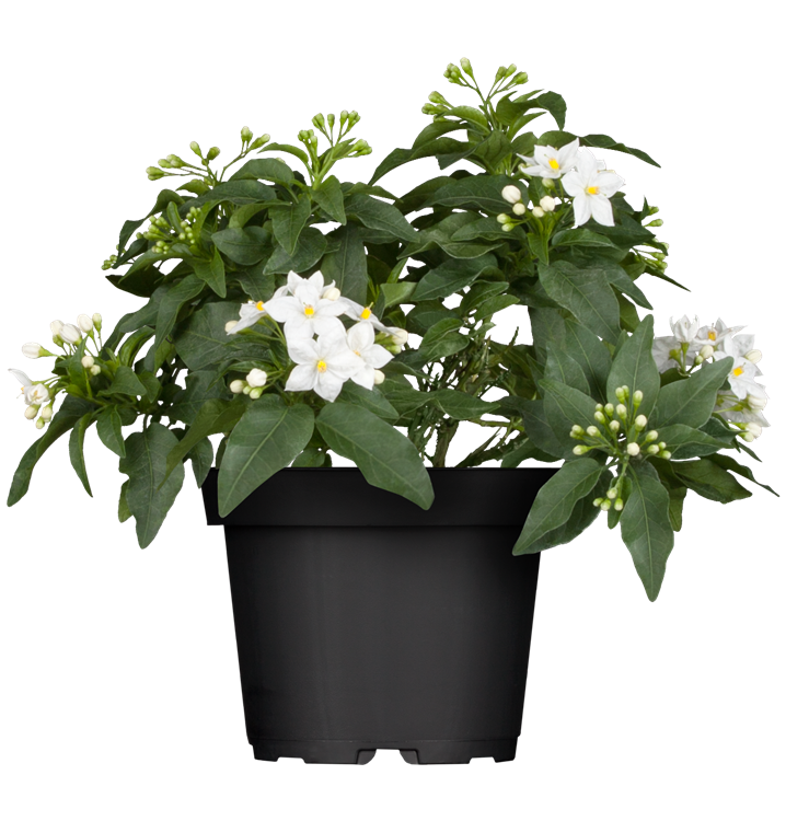 Der Jasminblütiger Nachtschatten (Solanum jasminoides) ist eine sehr beliebte, wintergrüne Kübelpflanze. Seine dekorativen Blüten sind sternförmig und erscheinen von Juni bis Oktober. Die dunkelgrünen Blätter sind lanzettlich. Der Standort sollte möglichst sonnig bis halbschattig sein. Eine durchlässige und nährstoffreiche Erde ist dabei ideal. Bei günstigen Bedingungen erreicht der Jasminblütiger Nachtschatten eine Höhe von ca. 2 m und wird bis zu 60 cm breit.