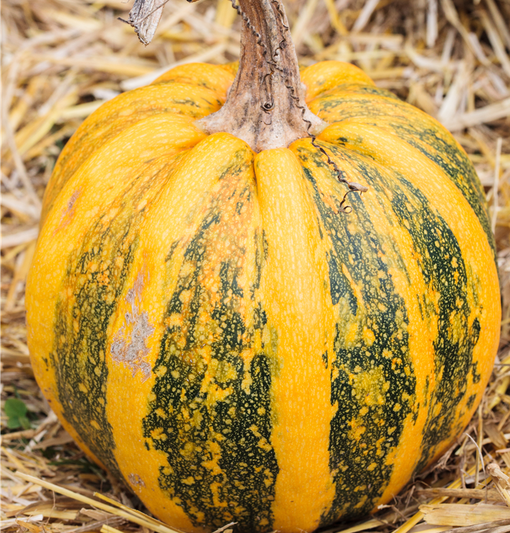 Der Zierkürbis (Cucurbita pepo) bildet Früchte, die aromatisch schmecken und bereits ab September geerntet werden können. Für das optimale Wachstum des Zierkürbises werden ein sonniger Standort und durchlässiger, nährstoffreicher Boden benötigt.
