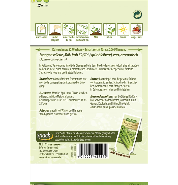Der Stangensellerie 'Tall Utah 52/70' ist im Gemüsegarten, aber auch zum Verzehr, zum Frischverzehr, zum Kochen oder als Heilpflanze sehr beliebt.