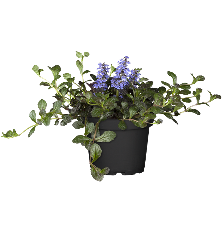 Der Rotblättrige Garten-Günsel 'Atropurpurea' (Ajuga reptans) ist eine kriechende, wintergrüne Staude mit dekorativen, glänzenden, eiförmigen, ganzrandigen, bronzefarbenen Blättern. Von April bis Mai trägt er blaue, lippenförmige, in Quirle angeordnete Blüten. An einem sonnigen bis halbschattigen Standort mit durchlässigem, humosem, nährstoffreichem Boden erreicht er gewöhnlich eine Höhe von ca. 15 cm und wird ca. 25 cm breit. Der Rotblättrige Garten-Günsel 'Atropurpurea' ist gut frostverträglich.