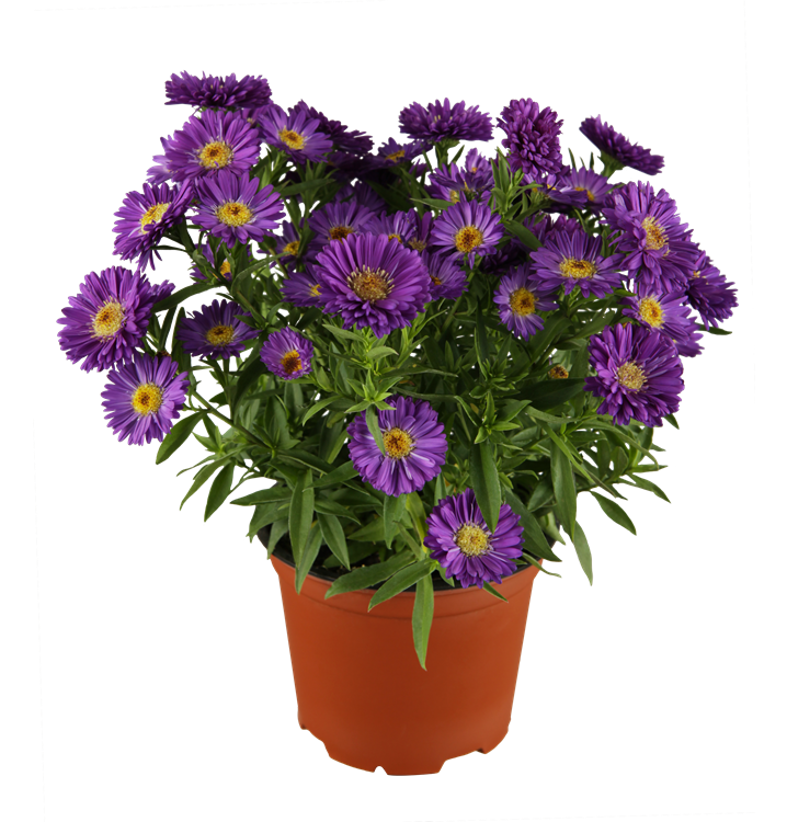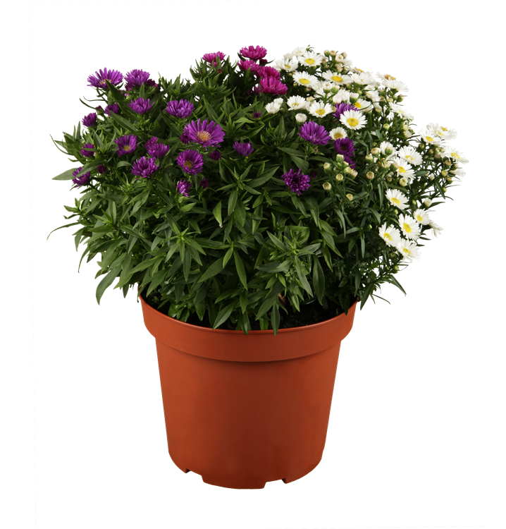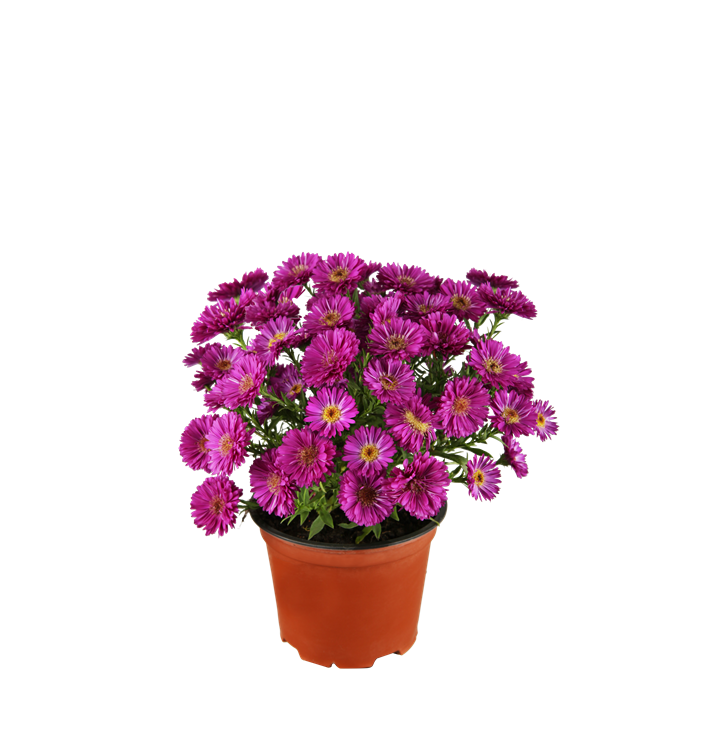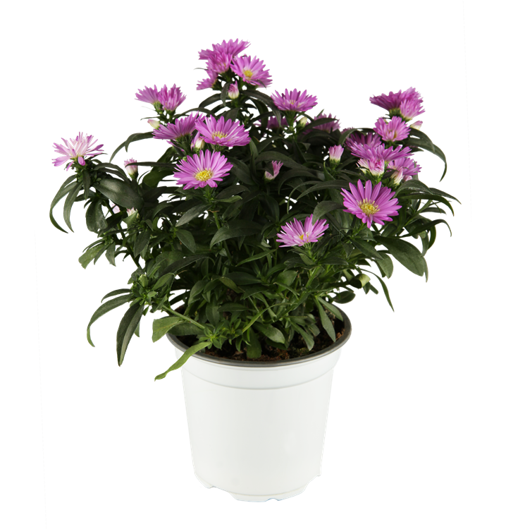 Aster novi-belgii bildet körbchenartige, weiße, rosafarbene, lilafarbene, violette Blüten ab September. Diese verströmen einen angenehmen Duft.