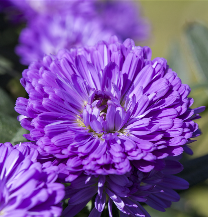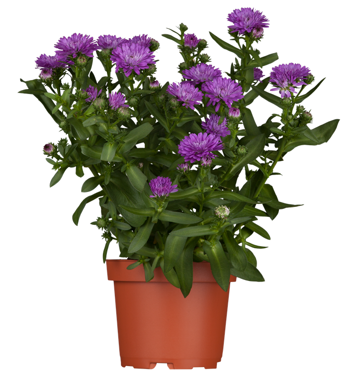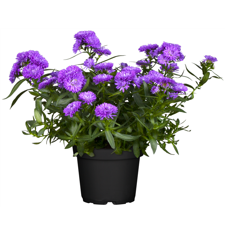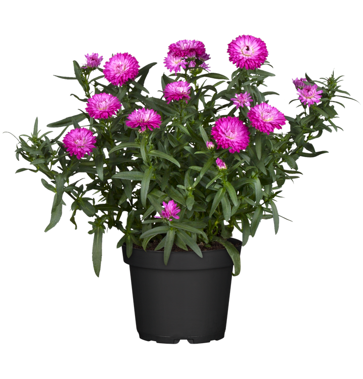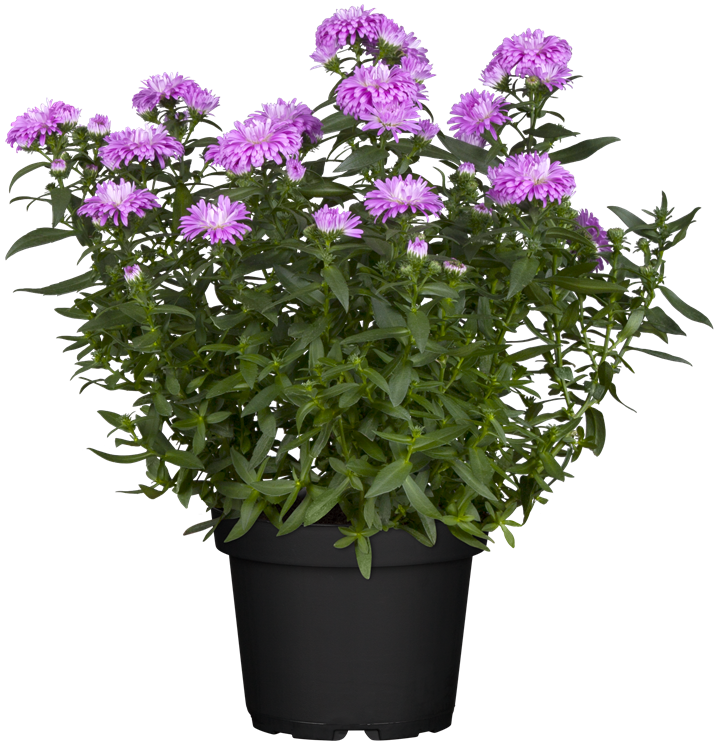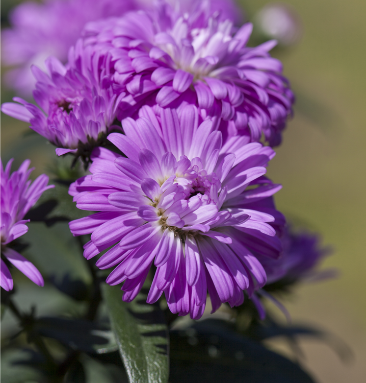 Aster novi-belgii 'Victoria'® bildet gefüllte, körbchenartige, blaue, pinke, rosafarbene Blüten ab September. Diese verströmen einen angenehmen Duft.