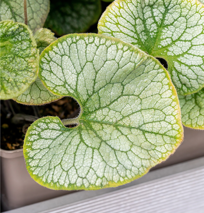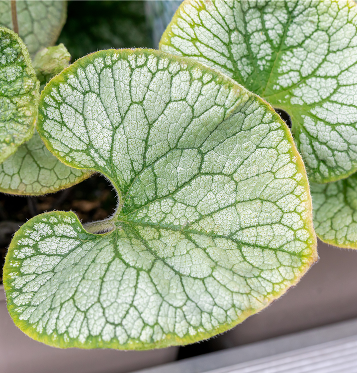 Hoher Blattschmuckwert. Die sommergrünen Blätter des Kaukasus-Vergissmeinnichts sind dunkelgrün, herzförmig.