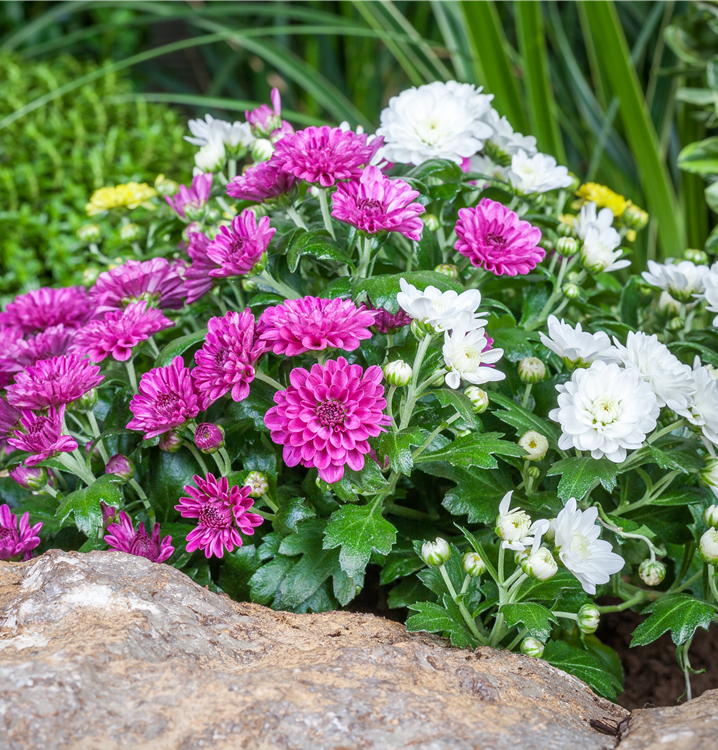 Die Herbst-Chrysantheme 'Trio' setzt schöne Akzente gemeinsam mit: