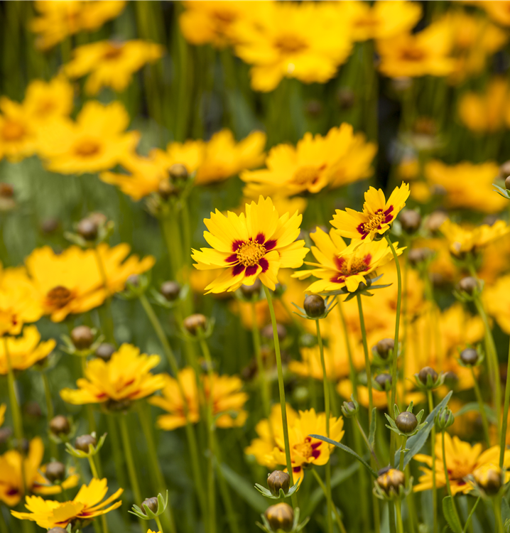 Coreopsis grandiflora bildet körbchenartige, goldgelbe Blüten ab Juni.