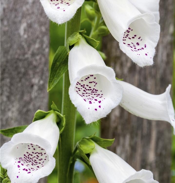Der Garten-Fingerhut (Digitalis purpurea) ist eine aufrechte, wintergrüne Staude, die von Juni bis Juli rote, weiße oder rosafarbene, trichterförmige Blüten bildet. Seine lanzettlichen Blätter sind mittelgrün. An einem sonnigen bis halbschattigen Standort mit durchlässigem, kalkfreiem Boden erreicht er gewöhnlich eine Höhe von ca. 1,3 m und wird ca. 40 cm breit. Der Garten-Fingerhut ist gut frostverträglich.