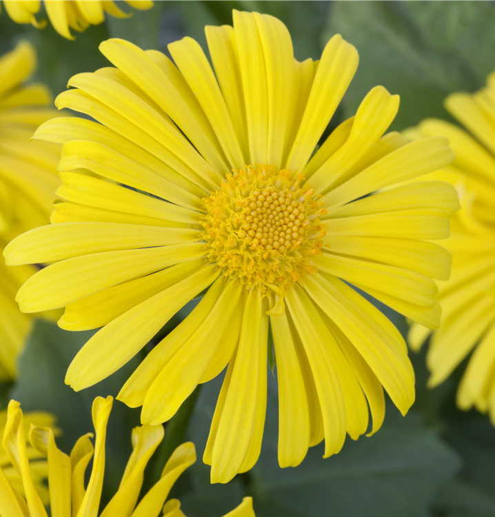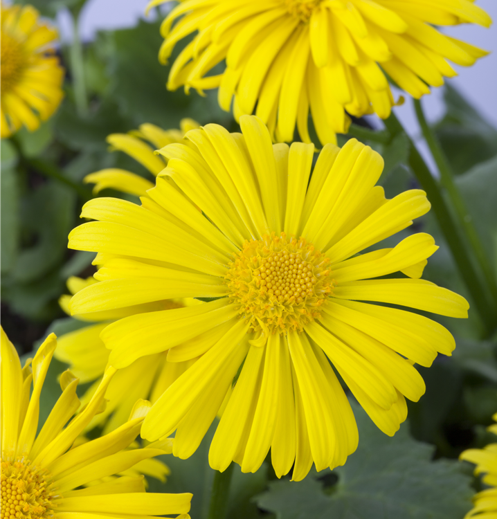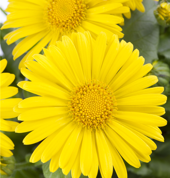 Doronicum orientale bildet körbchenartige, gelbe Blüten ab April.