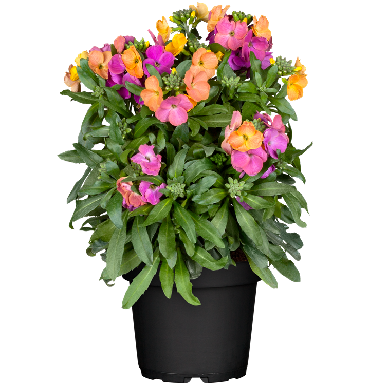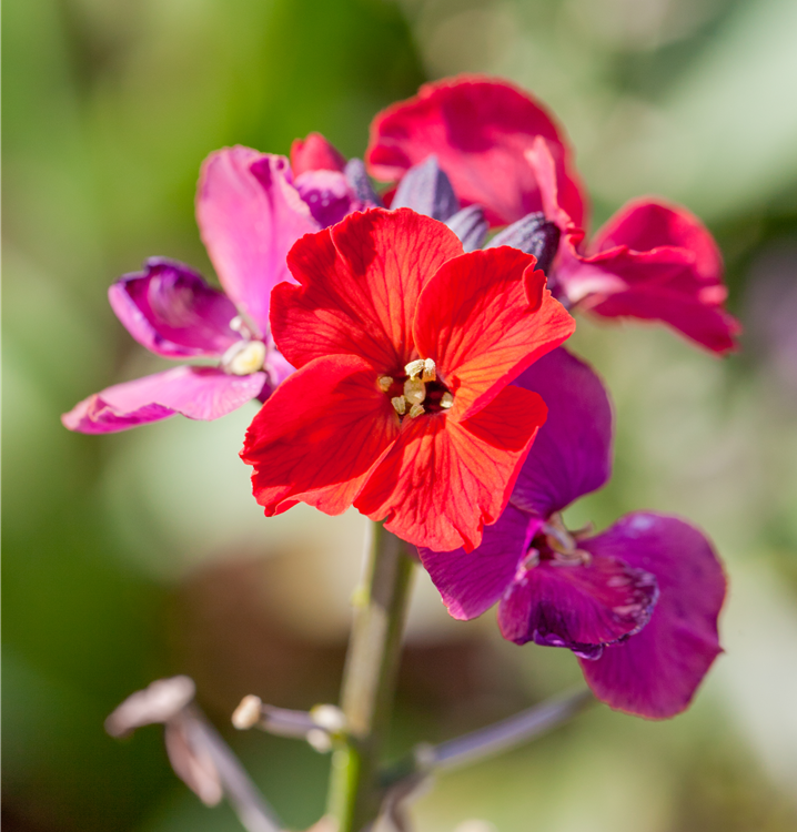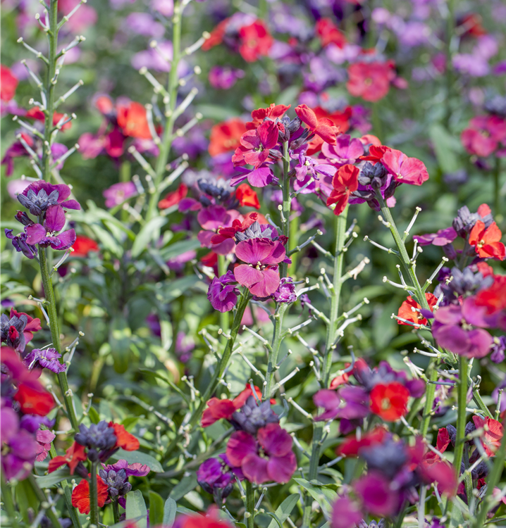 Erysimum cheiri bildet gelbe, orangefarbene, rote Blüten ab April. Diese verströmen einen starken Duft.
