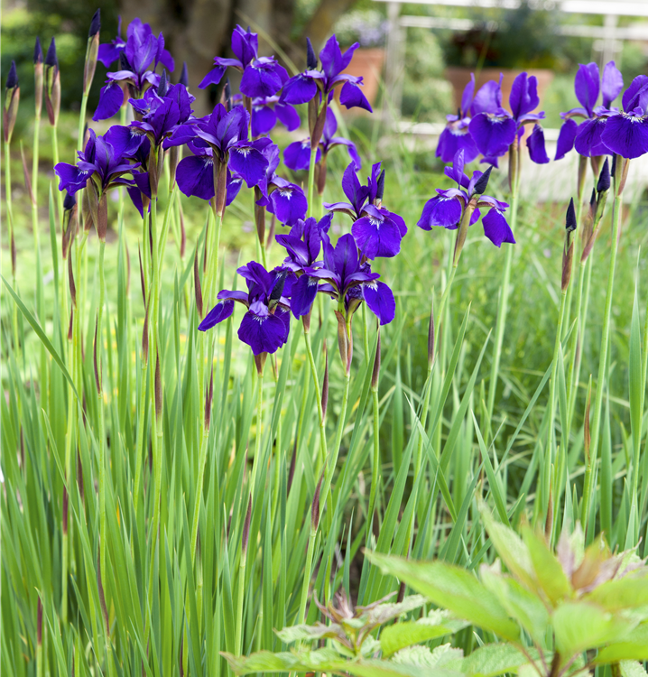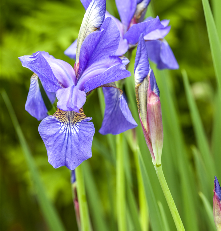 Iris sibirica bildet blauviolette Blüten ab Mai.