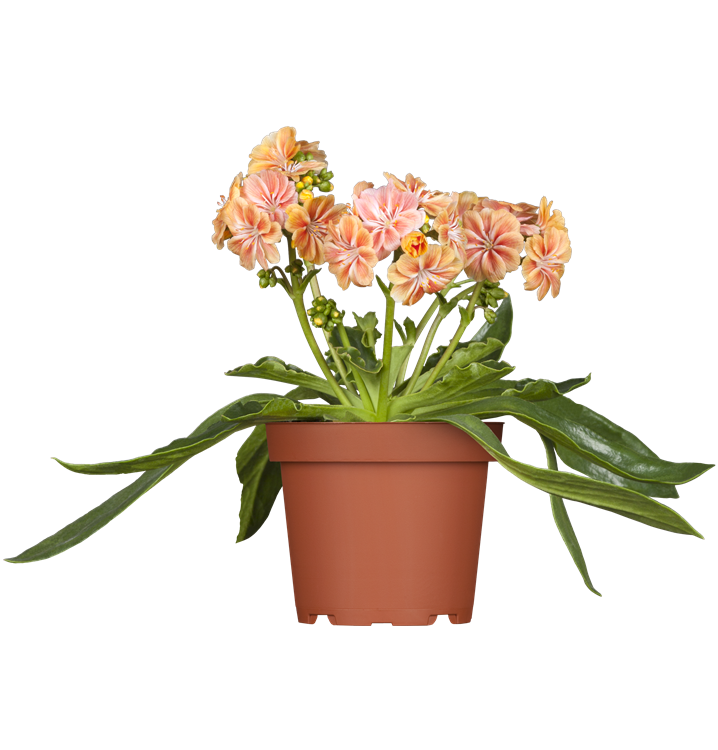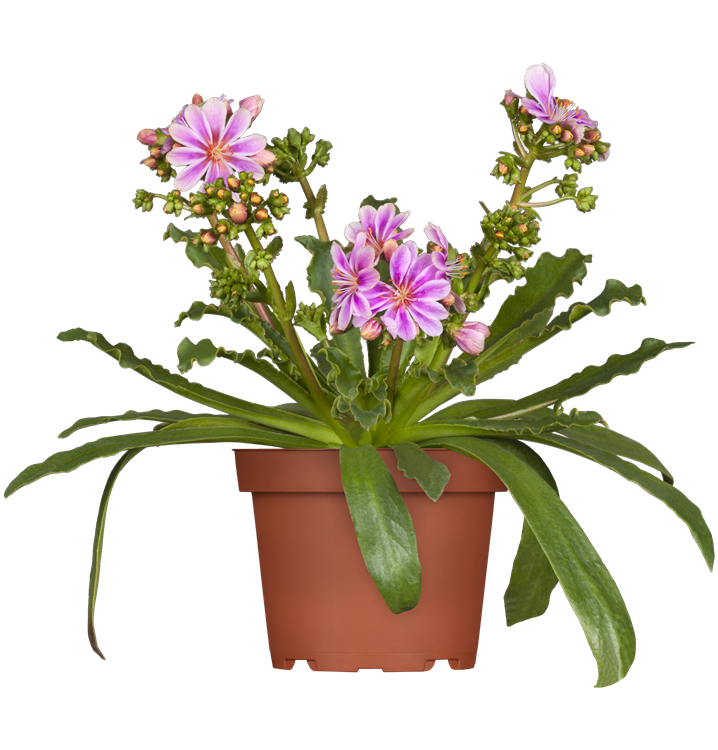 Lewisia cotyledon bildet schalenförmige, rosafarbene Blüten ab Mai.