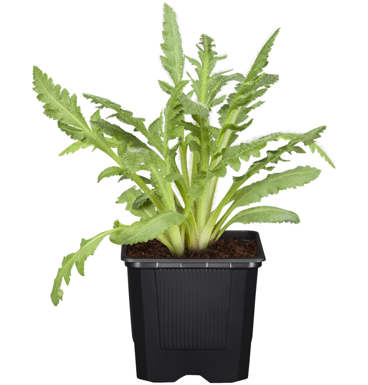 Die sommergrünen Blätter des Orientalischen Mohns sind dunkelgrün, gefiedert.