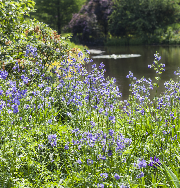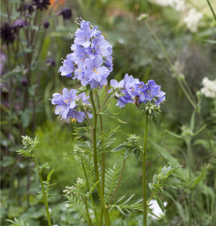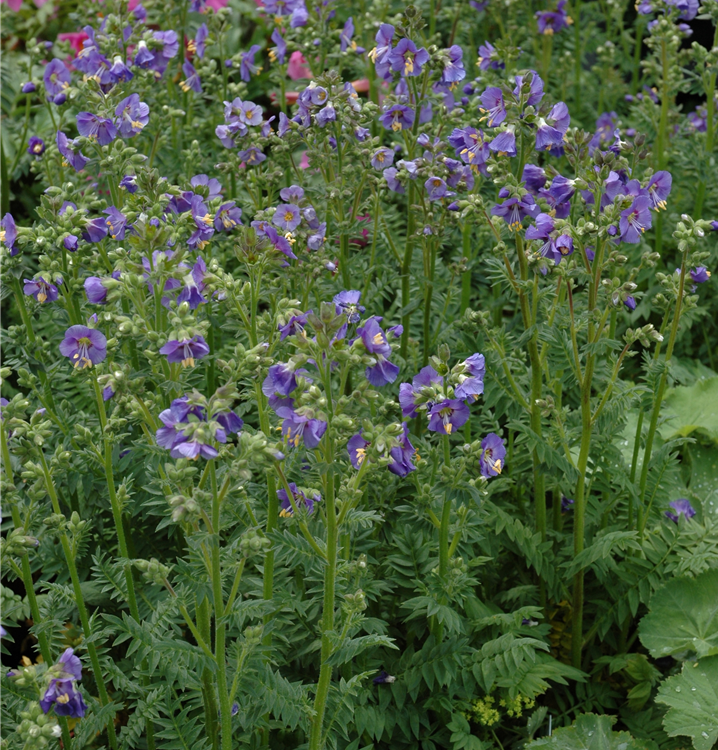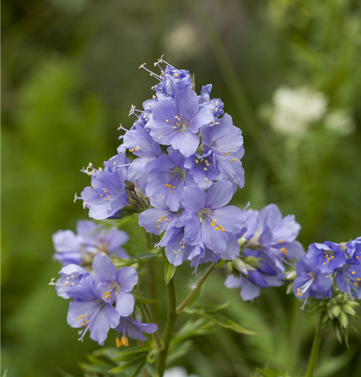 Polemonium caeruleum bildet trichterförmige, blaue Blüten ab Mai. Diese verströmen einen angenehmen Duft. Bei richtiger Pflege Nachblüte von Juli bis August.