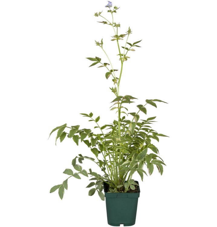 Die sommergrünen Blätter der Blaublühende Jakobsleiter sind mittelgrün, gefiedert.