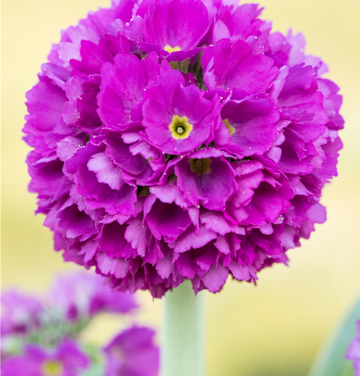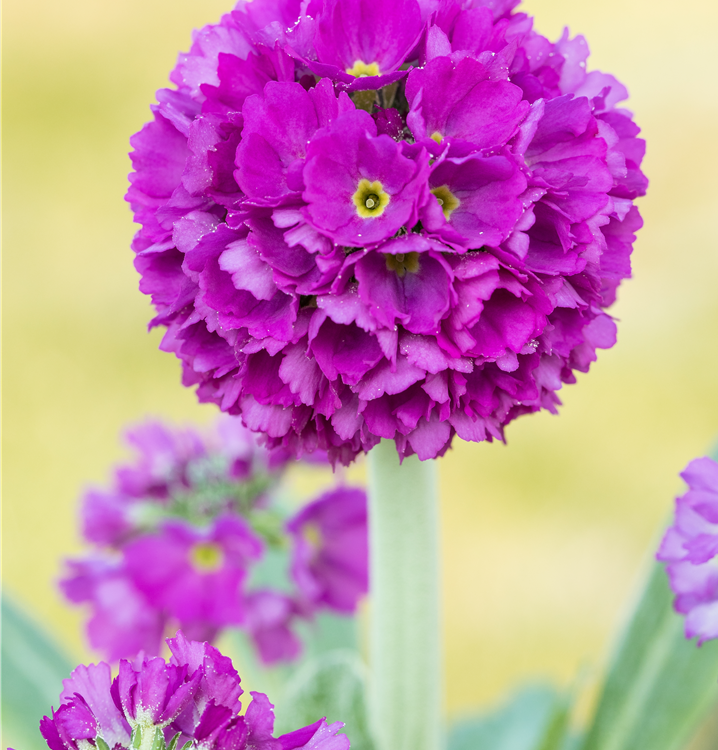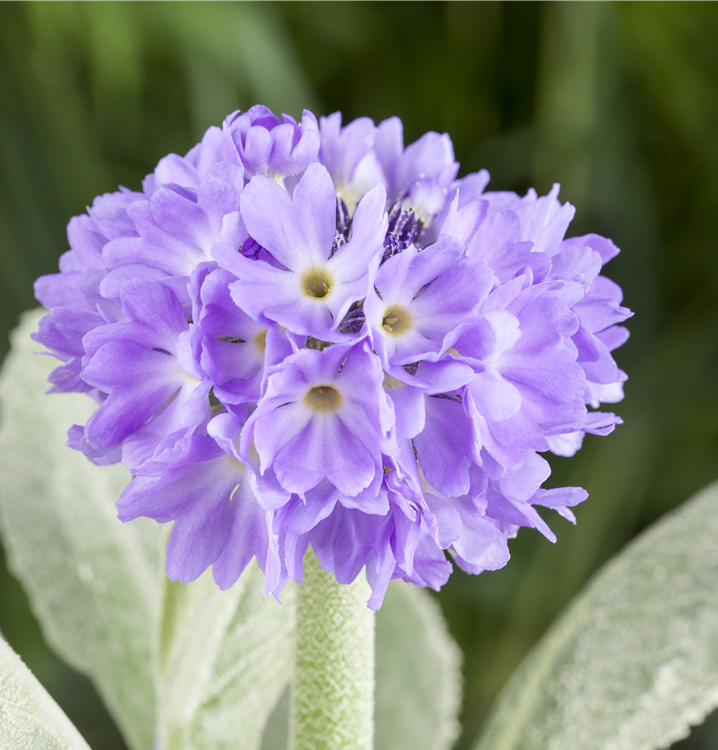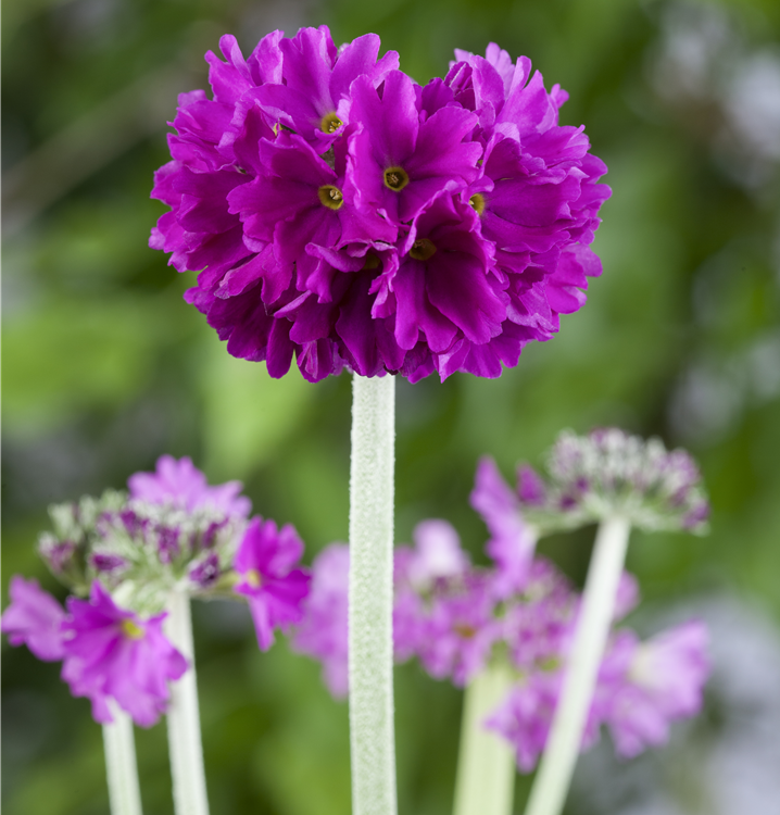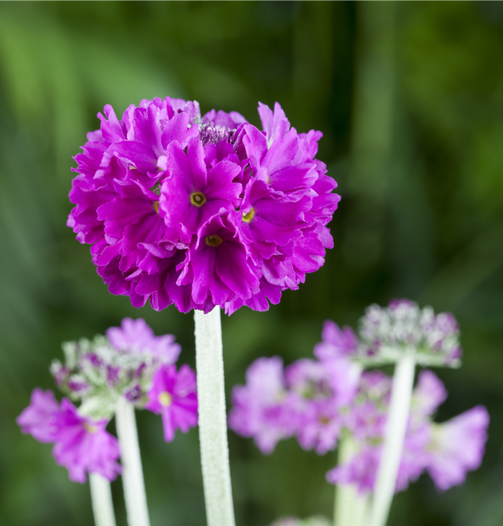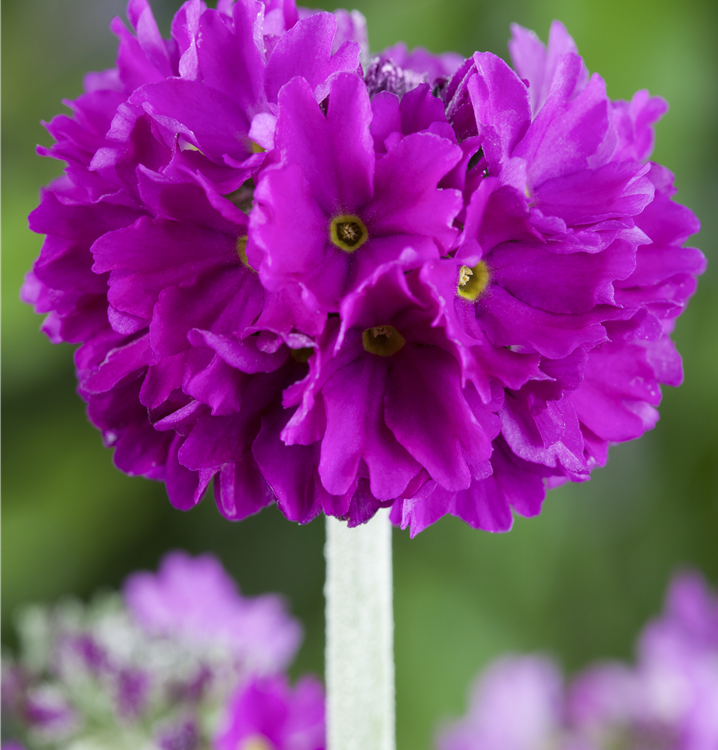Primula denticulata bildet ballförmige, violette Blüten ab März.