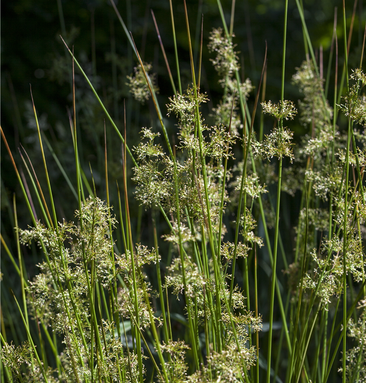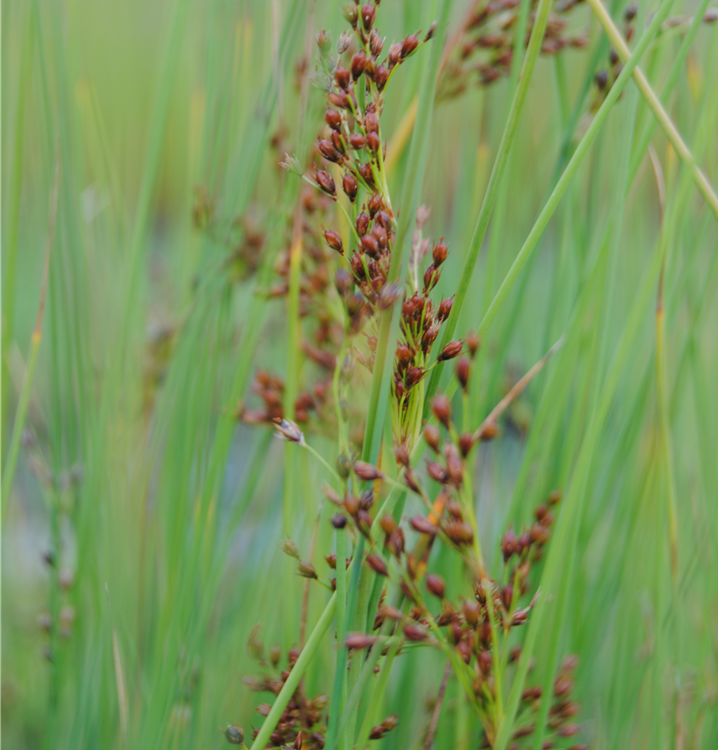 Die Flatter-Binse (Juncus effusus) ist mit ihren mittelgrünen Blättern eine ausgesprochen dekorative Wasserpflanze, die für solche Einsatzbereiche wie Teichrand, Bachlauf, Teich, Beeteinfassung, Gehölzrand, Kübel und Staudenbeet besonders gut geeignet ist. Gelbe Blüten erscheinen von Juli bis August. Sie bevorzugt humosen, kalkfreien Boden in sonniger bis halbschattiger Lage. Die Flatter-Binse ist gut frostverträglich. Die aufrechte, horstbildende Pflanze erreicht gewöhnlich eine Höhe von ca. 80 cm.