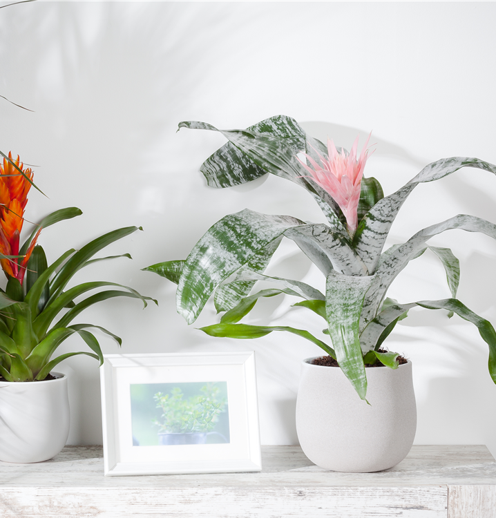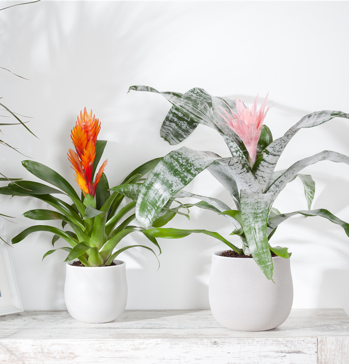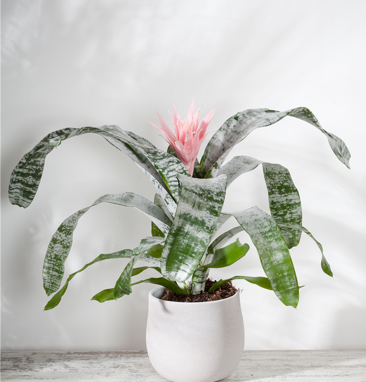 Die Lanzenrosette (Aechmea) ist eine weiß, gelb, orange, rot, rosa oder violett blühende Pflanze, die lanzettliche, dickfleischige Blätter trägt. Ihre trichterförmigen Blüten erscheinen von Juli bis August. Diese aufrechte Pflanze gedeiht am besten an einem halbschattigen Standort.