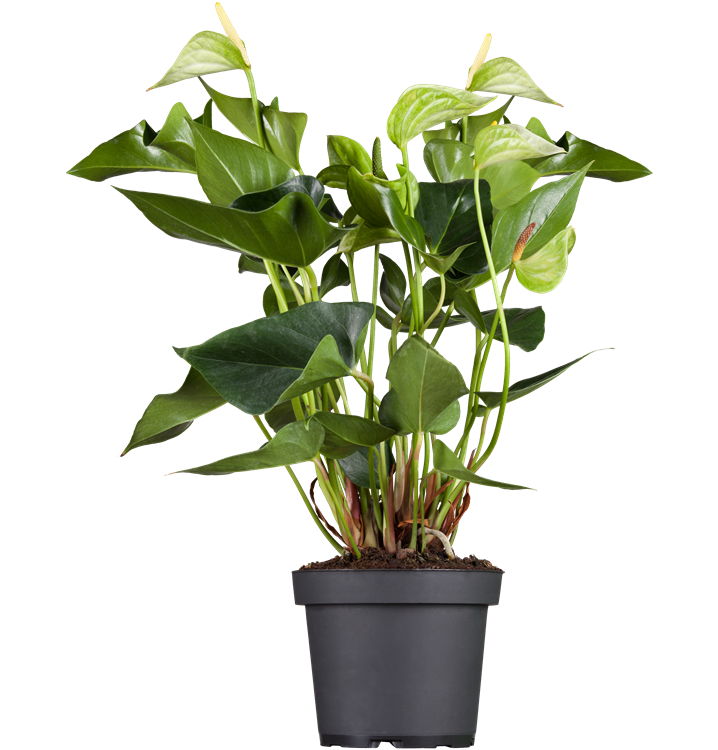 Die immergrünen Blätter der Flamingoblume sind dunkelgrün, herzförmig, glänzend.