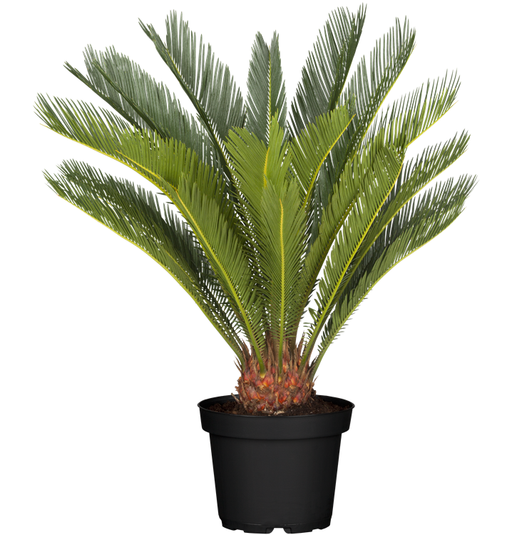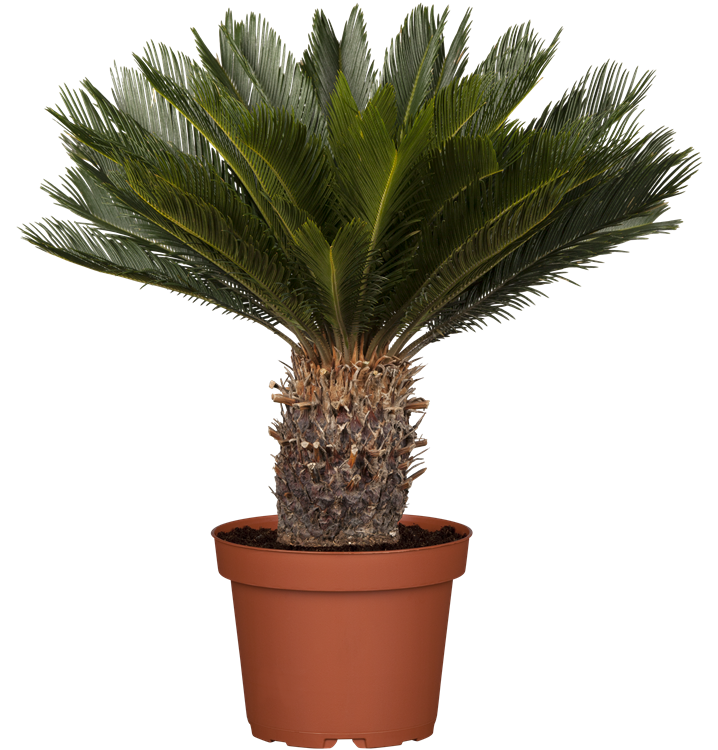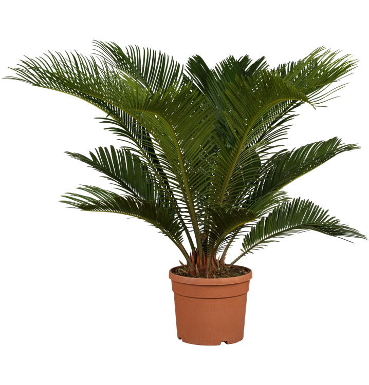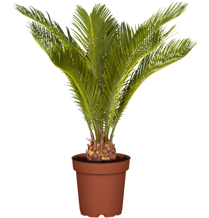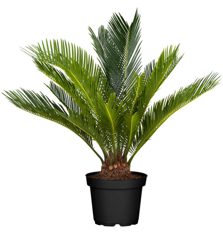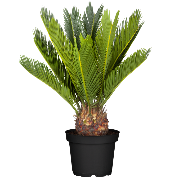Der Palmfarn (Cycas revoluta) trägt dunkelgrüne, gefiederte Blätter. Diese aufrechte, ausladende und palmenähnliche Pflanze gedeiht am besten an einem sonnigen Standort.