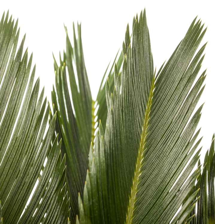 Die immergrünen Blätter des Palmfarns sind dunkelgrün, gefiedert.